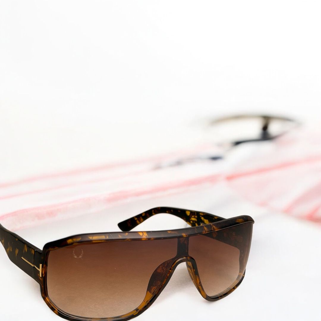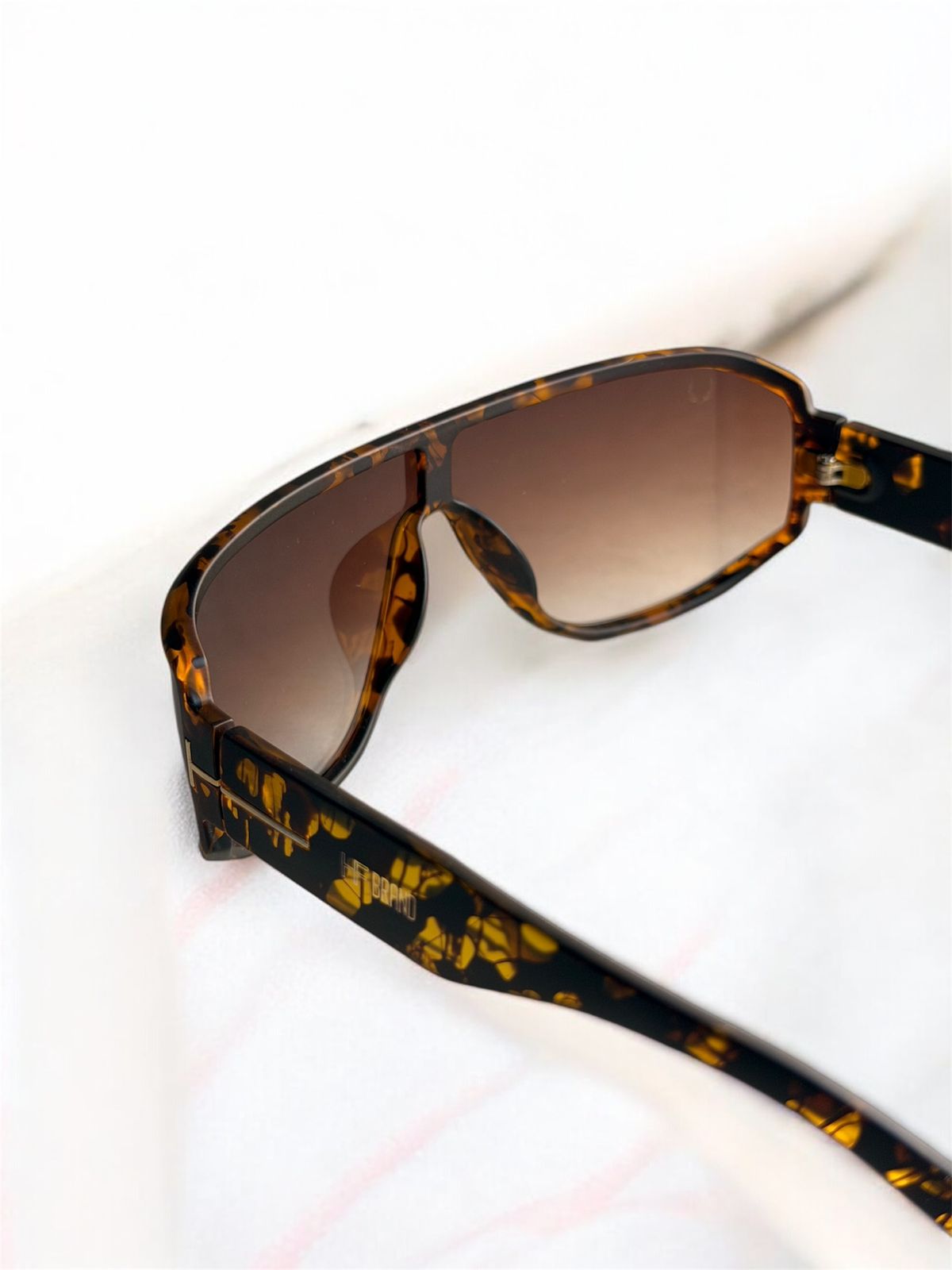 Sua armação em padrão tartaruga traz personalidade e elegância, enquanto a lente ampla em tom marrom degradê garante conforto visual e proteção, adaptando-se perfeitamente a diferentes ambientes e momentos do dia.