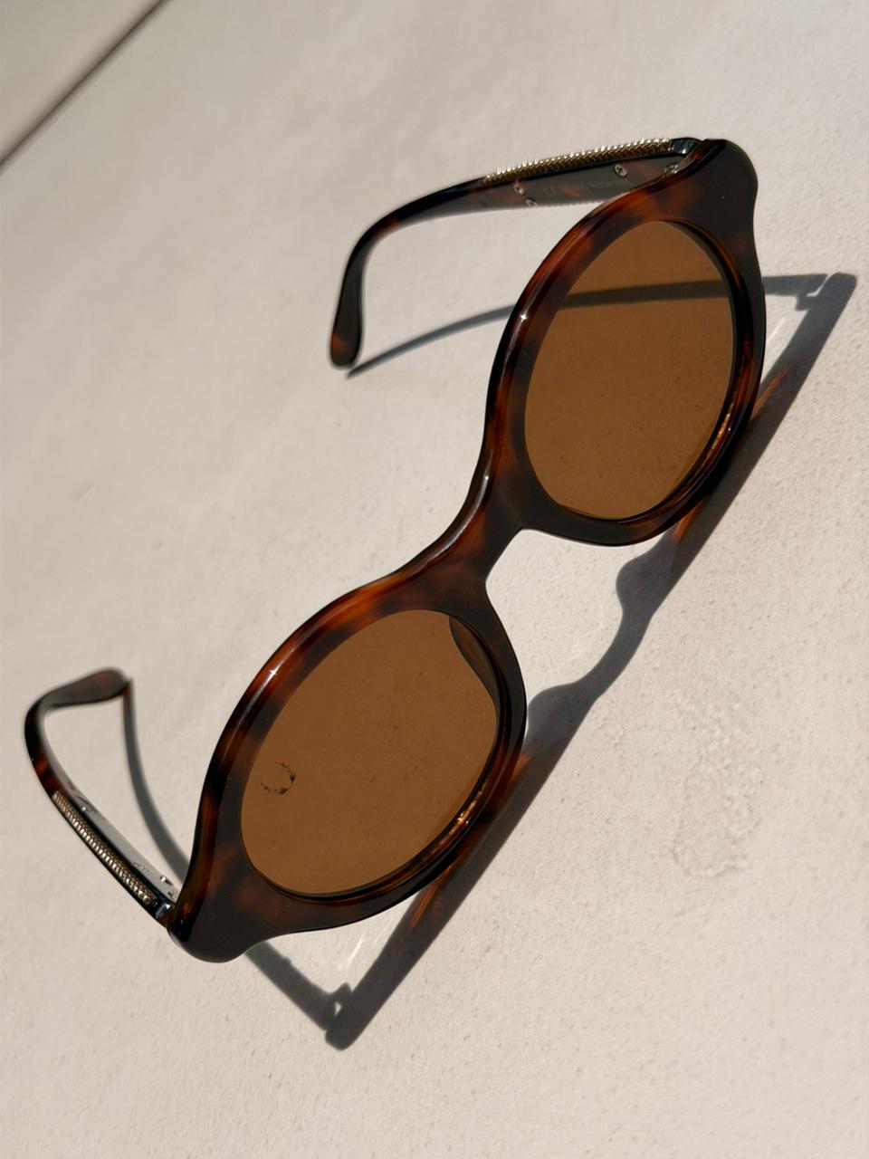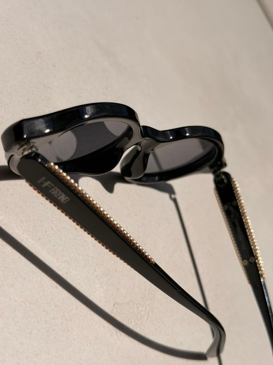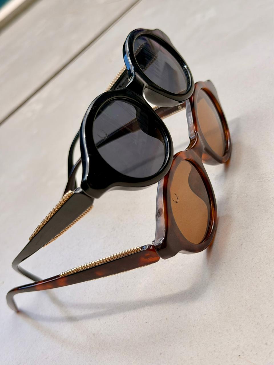 Destaque especial para as hastes com detalhe metálico em corrente dourada, que elevam o visual e trazem um toque de luxo discreto.