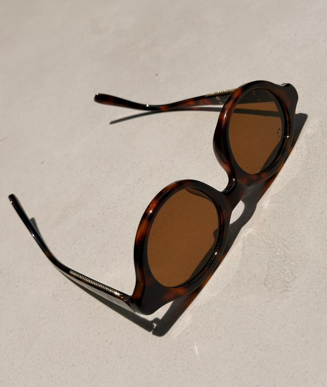 Armação em acetato premium, com design oval orgânico e linhas suaves.