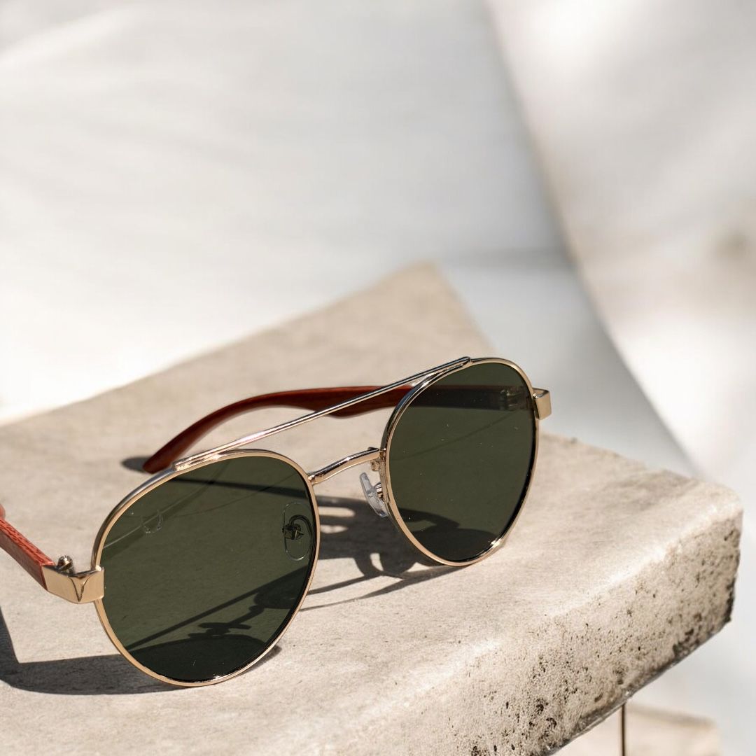 •Une o design tradicional do aviador com detalhes modernos e naturais
