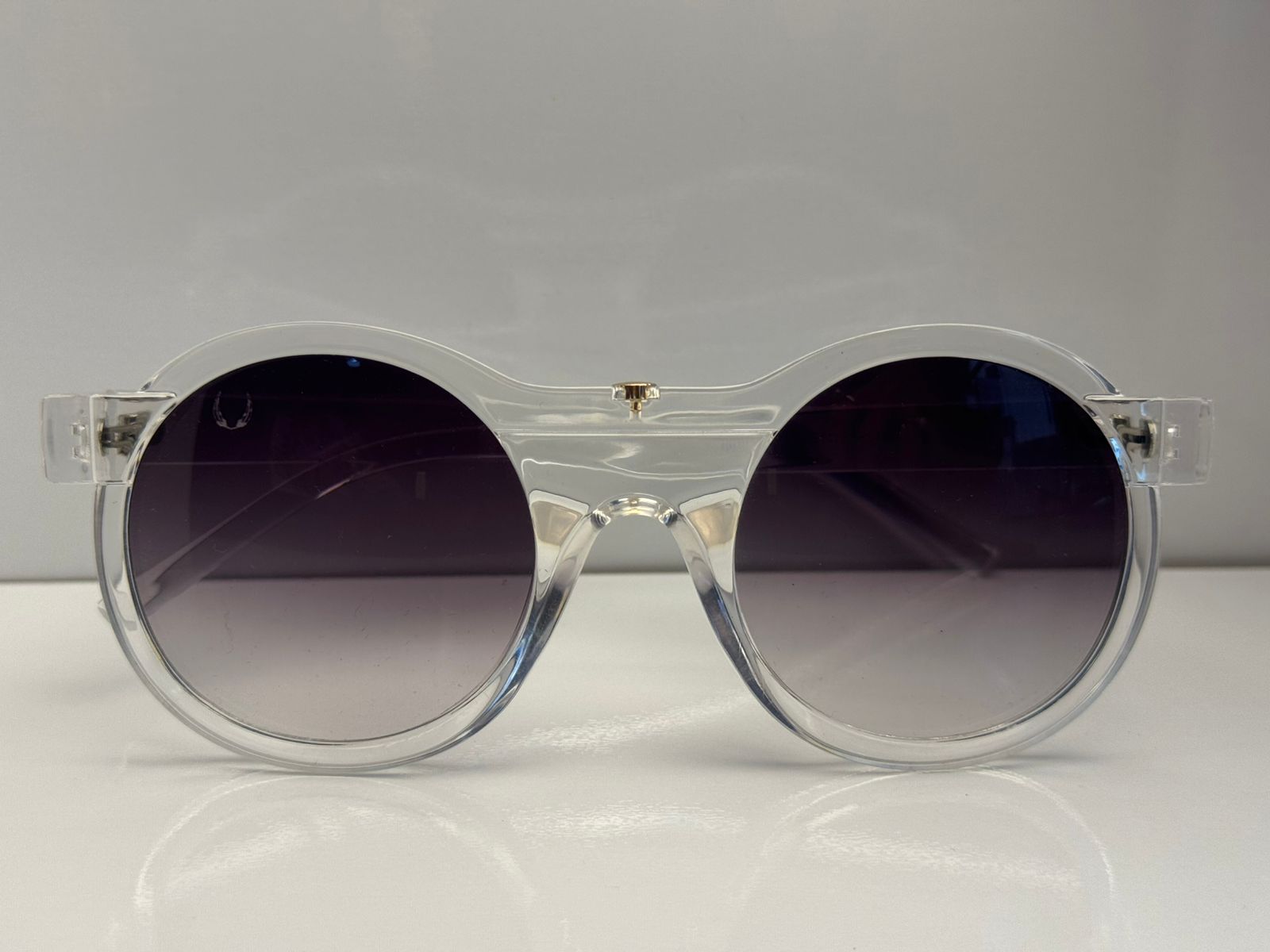 •Transparente em acetato cristal, moderna e leve.