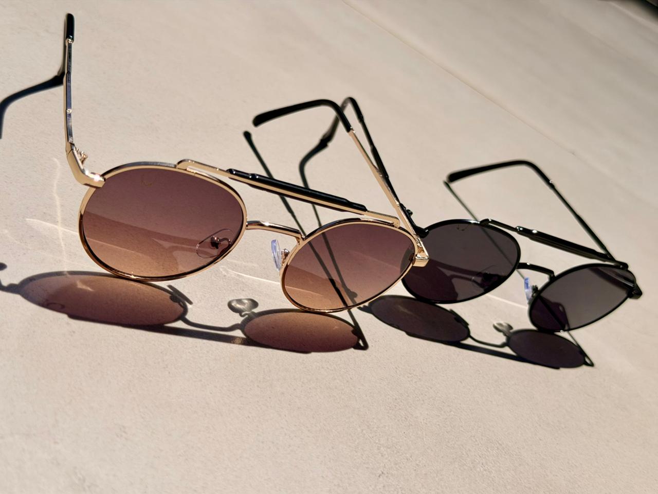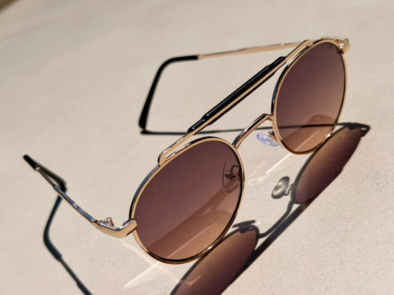 Esse modelo tem uma estética retrô refinada, com lente redonda, ponte dupla metálica e um ar clássico que lembra ícones do passado, mas com acabamento atual.