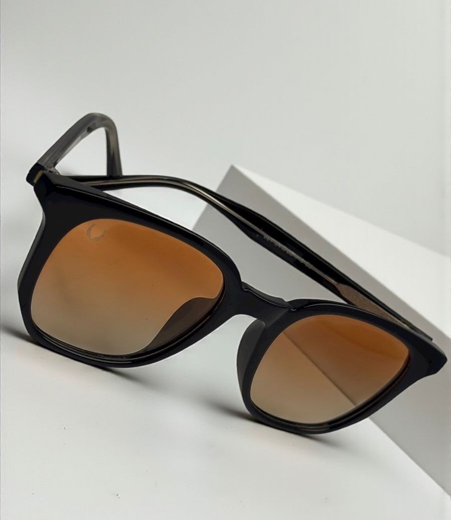 Lentes em tom âmbar, que transita do marrom para o dourado suave. Traz aquele efeito quente e sofisticado, ideal para dias de sol intenso e para composições com tons terrosos, areia e dourado.
