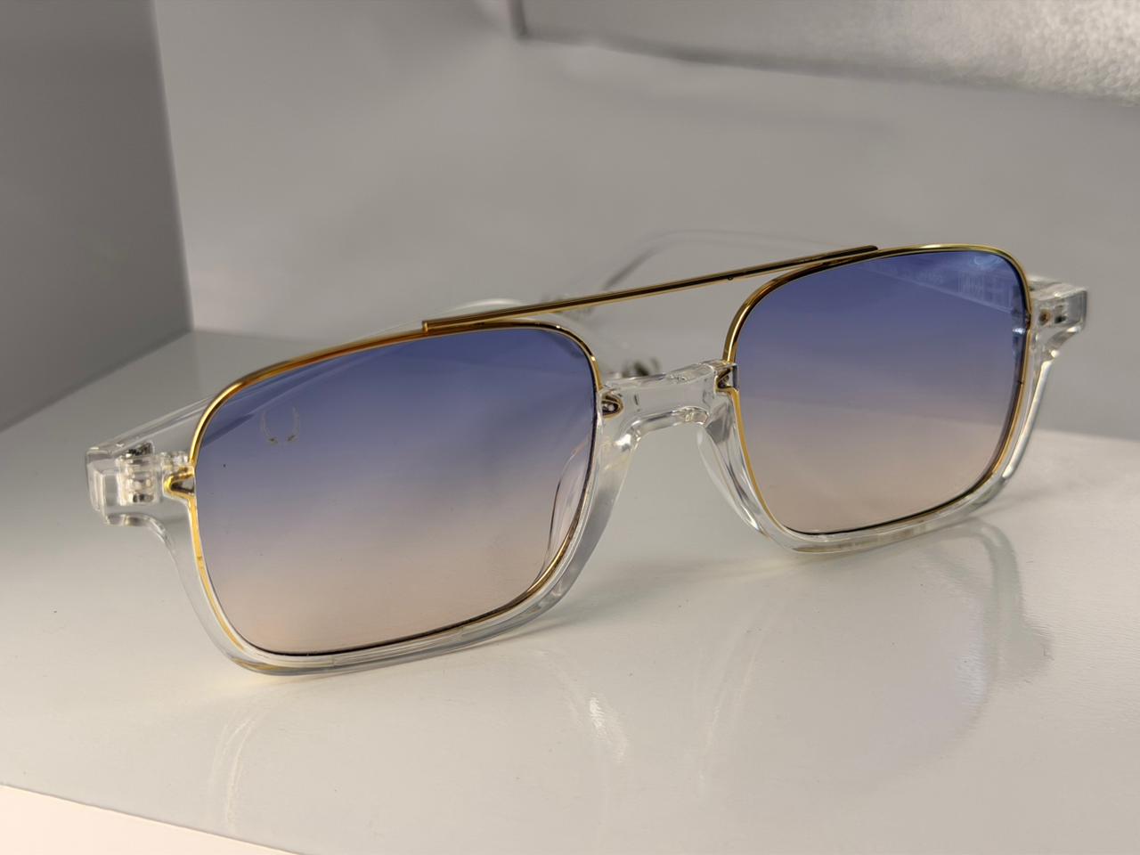 •Lente em degradê suave azul com fundo rosé/pêssego, criando um efeito moderno e iluminado.