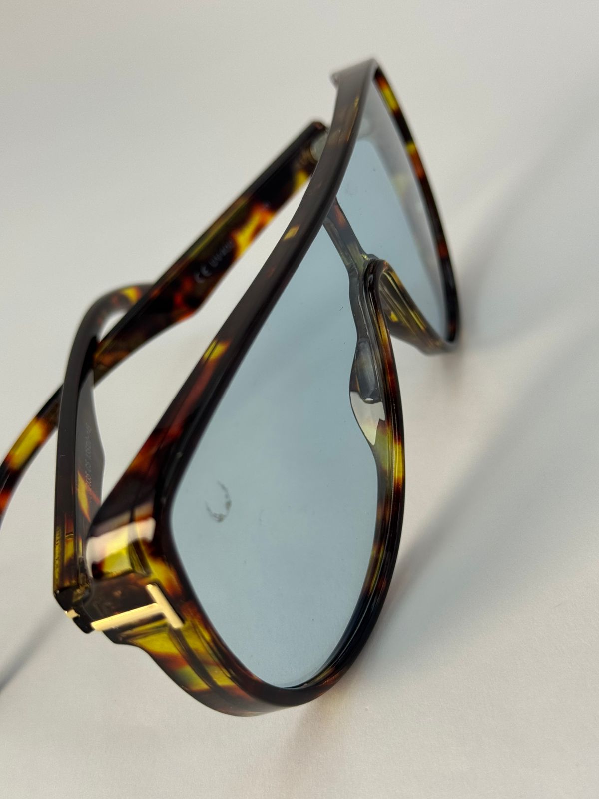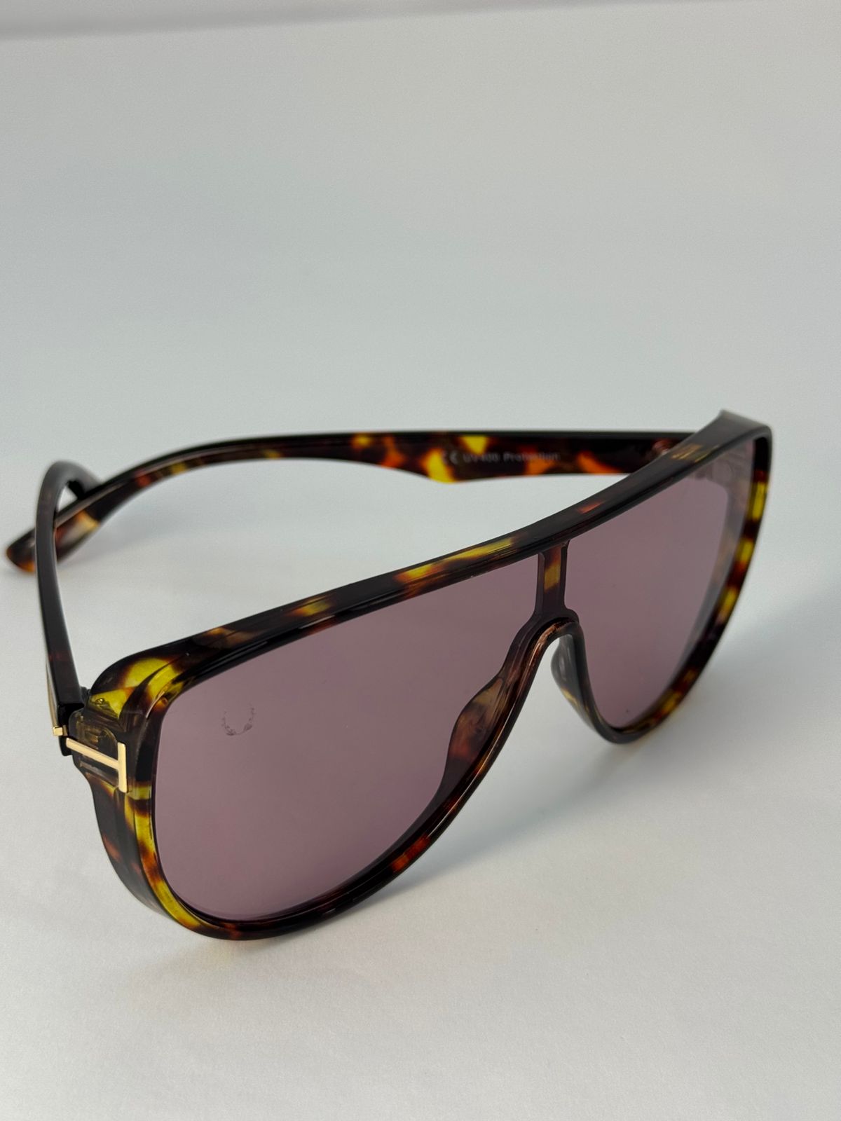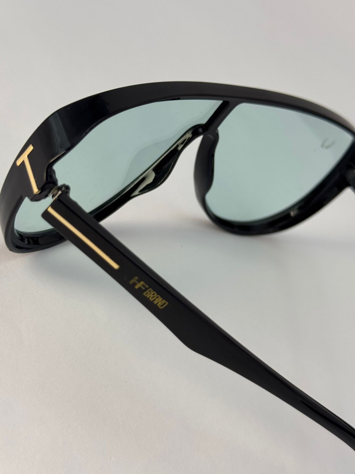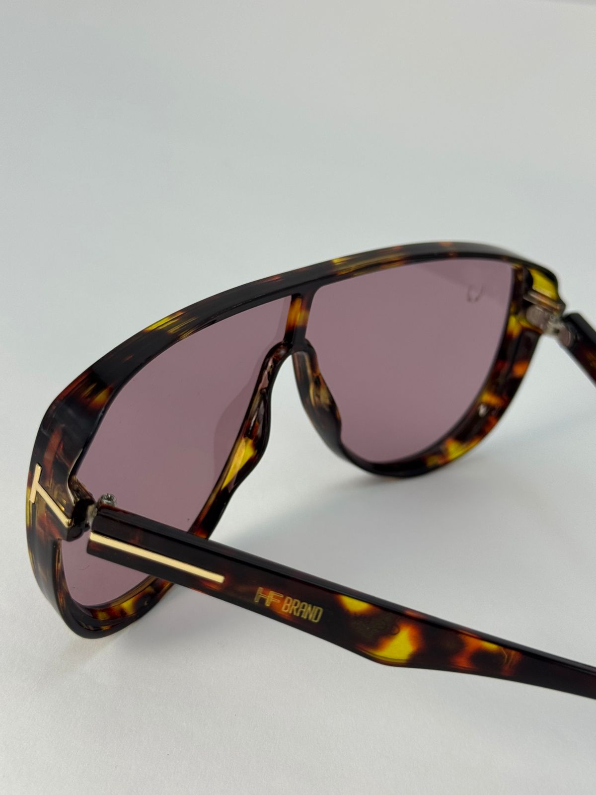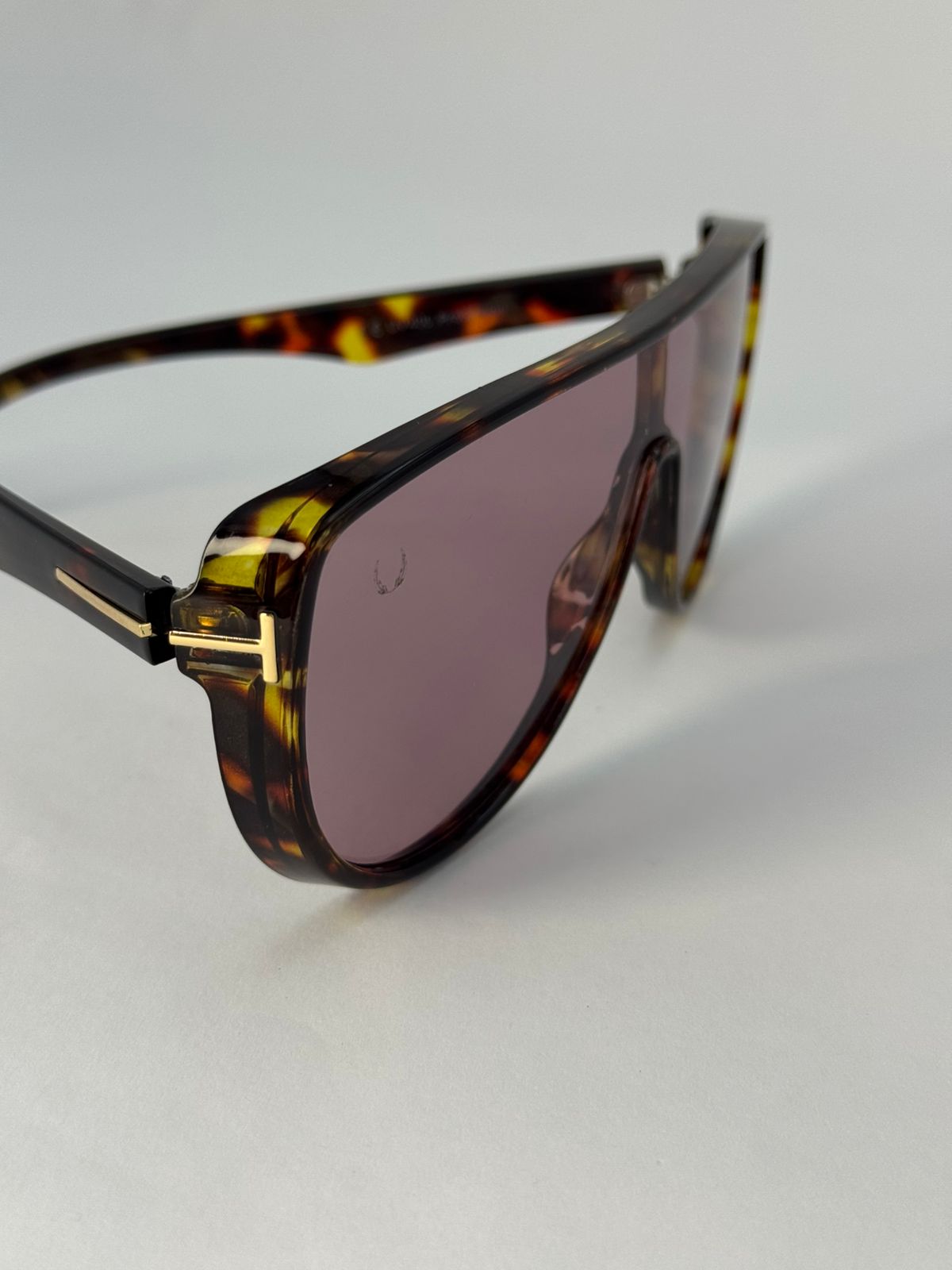 Armação: Acetato robusto, acabamento, preto liso ou tartaruga, design máscara e hastes espessas com detalhe metálico dourado.