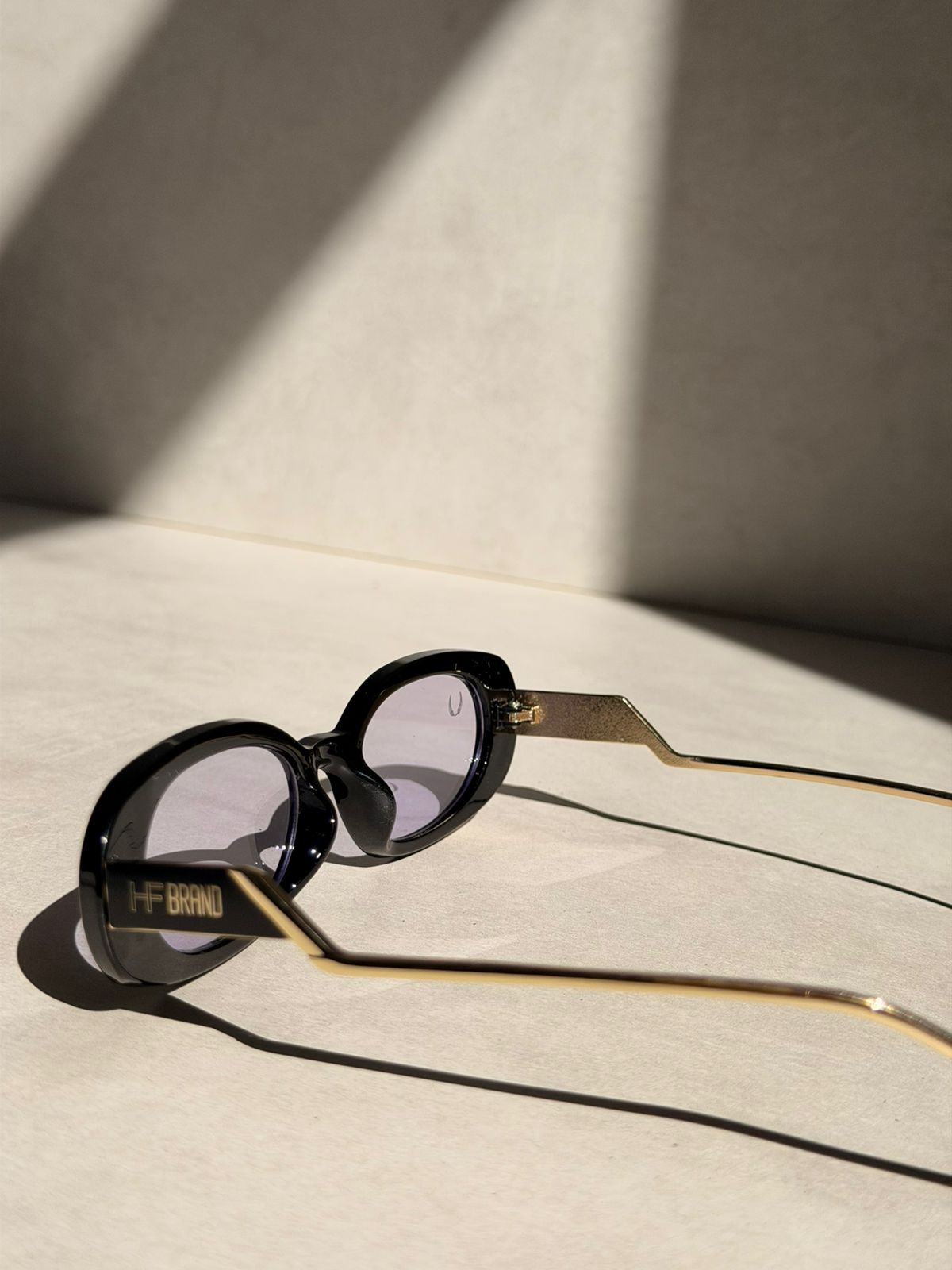 Armação em acetato de acabamento polido, com formato oval alongado, trazendo um visual contemporâneo com forte influência retrô. As hastes metálicas finas em tom dourado criam um contraste elegante com a frente do óculos, garantindo leveza, conforto e um toque de sofisticação. Design estruturado, moderno e marcante.