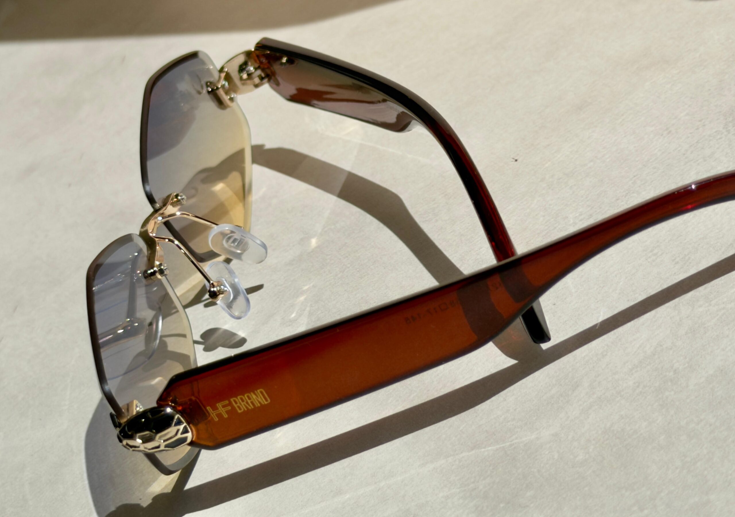 •A cobra nas hastes reforça o conceito de força, identidade e exclusividade, transformando o óculos em uma peça icônica da coleção HF