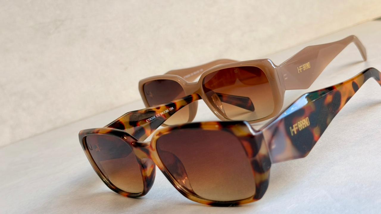 O HF TOSCANA, segue o estilo quadrado oversized em acetato, muito presente nas tendências atuais por trazer presença e personalidade ao look.