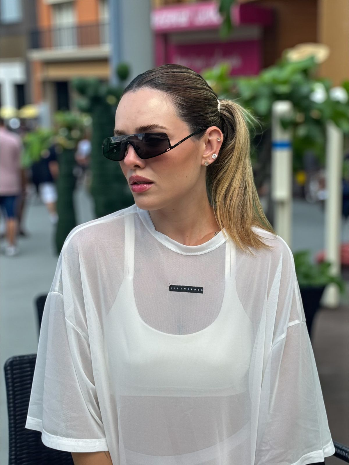 •Proteção UV e leve curvatura que se adapta ao rosto, criando efeito de máscara envolvente.