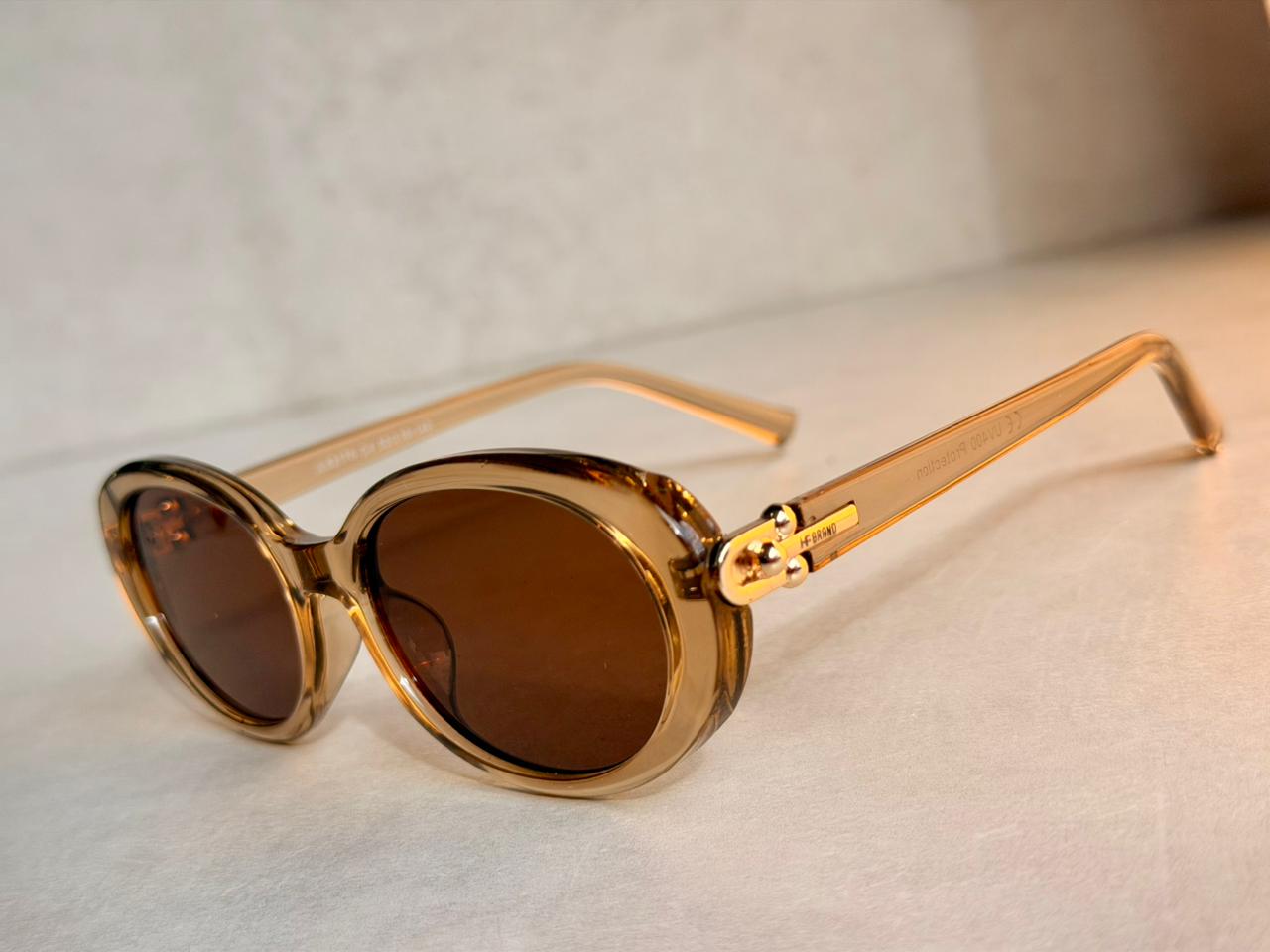 •Lentes em tom marrom (visual quente e atemporal)